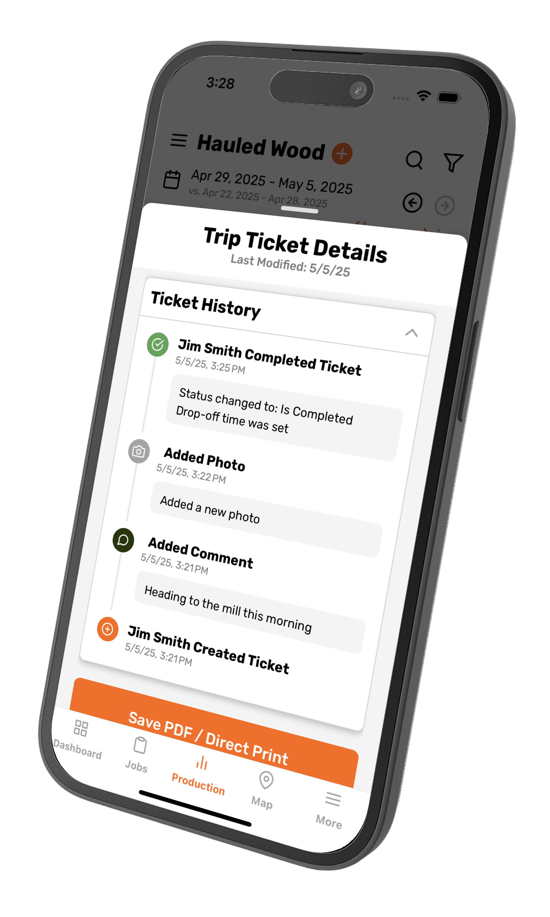 See every load as it moves from stump to scale. Track pickup, delivery, volume, and destination in real time—no calls or paperwork.